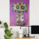 Aquarelle et peinture acrylique, représentant un vase vintage peint plein de tournesols frais.