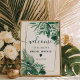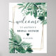 Panneau d'accueil de la douche nuptiale en aquarelle de palme vert tropicale, avec bordure géométrique en faux or.