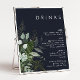 Nous avons conçu ce menu de boissons de mariage avec du feuillage vert et des feuilles d'or sur fond marine pour compléter votre réception bohème simple et élégante. Il présente des feuilles de eucalyptus vert et blanc modernes, du feuillage de fougère, une fleur de succulente et des feuilles en feuille d'or minimalistes. Ces éléments donnent l'impression d'une forêt enchantée aquarelle fantaisiste, parfaite pour tout mariage rustique et bohème ! N'hésitez pas à personnaliser et à faire vôtre ; n'hésitez pas non plus à parcourir le reste de la collection pour trouver des produits assortis et coordonnés !
