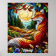 Ce design dynamique reproduit l'apparence du vitrail et présente un beau renard rouge marchant parmi les fleurs.