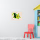 Une affiche avec un tableau d'aquarelle plein de vitalité d'un avocat complet, associée à un demi-avocat assis sur un lit de feuilles. Des teintes vertes et jaunes vifs donnent vie à ce fruit. Placez-vous sur un arrière - plan de couleur pêche.