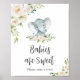 Affiche Vert Floral Blanc Eléphant Bébés sont doux