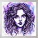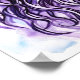 Cette affiche fantaisiste présente un imprimé éclatant du visage d’une jeune femme en gros plan, finie dans un imprimé d’aquarelle bleu violet.