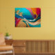 This vibrant abstract artwork captures the spirit of a tropical beach through flowing forms, bold color, and a sense of endless summer energy. Turquoise and deep ocean blues stretch across the horizon, while warm sands curve gently through the composition in layered tones of gold and cream. Explosive accents of coral pink, sunset orange, and rich magenta rise like a glowing sky, creating a dynamic contrast that feels both joyful and immersive.