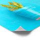 The Bathroom: The dominant azure blue background creates a clean, coastal, and watery vibe that complements white tiles or nautical themes.