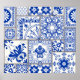 Tuile en patchwork sans couture avec motifs victoriens. Tuiles de céramique majorquine, azulejo bleu et blanc, décoration traditionnelle portugaise et espagnole originale. Vintage éclatement d'agrumes - Aquarelles et plus encore! Citrus Burst - Aquarelle Slices of Delight! tuile, portuguais, damask, portugal, arabesque, motif, bleu, carré, vintage, géométrique, azulejo, illustration, marocain, floral, sans couture, victorien, lisbonne, mosaïque, abstrait, arrière - plan