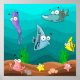 La vie marine sous la mer Affiche personnalisée pour les nurseries ou les chambres d'enfants présente une illustration colorée avec des poissons de dessin animé, des étoiles de mer, des coquillages et d'autres créatures marines dans des tons amusants de violet, rose, bleu et jaune dans une eau aquamarine avec des collines de sable ondulantes et une végétation au fond, c'est tellement adorable et amusant. Vous pouvez la personnaliser en ajoutant ou en changeant les images, le texte et le style. N'oubliez pas de voir nos articles de décoration assortis et coordonnés personnalisés dans notre magasin sur zazzle.com/DIYDecor.