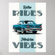 Apportez le passé dans le présent avec ce graphique élégant avec une voiture classique vintage associée au texte en gras "Retro Rides, Modern Vibes". Idéal pour ceux qui apprécient le design intemporel et la touche contemporaine, cette pièce dégage charme et personnalité pour tout espace ou collection.