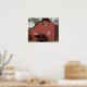 Affiche Vielle grange rouge et remorque Cheval rouge Coule