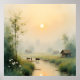 Affiche Vietnamese Morning Mist Village Watercolor Art