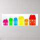 Belle illustration d'un groupe de maisons de différentes couleurs et tailles debout dans une rangée. Image disponible sur divers cadeaux et produits.