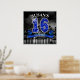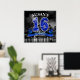 Cette affiche élégante présente une parties scintillant géante en faux bleu '16' et un ruban sur une photo en noir et blanc d'une ville lumineuse reflétée sur l'eau. Ajoutez le nom du célébrant de votre anniversaire pour personnaliser en utilisant le modèle facile fourni.