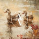 Ce tableau de style vintage capture magnifiquement une scène d'automne sereine par un ruisseau doux, où deux canards glissent gracieusement dans l'eau. Les tons chauds et feutrés du tableau évoquent un sentiment de calme et de nostalgie, avec les riches tons de marron, d'or et d'orange et de rouge reflétant l'air d'automne croustillant. Les feuilles tombés à la surface de l'eau et la texture douce des coups de pinceau donnent vie à l'atmosphère paisible, faisant de cette oeuvre un reflet parfait de la tranquillité que la nature a trouvée pendant la saison d'automne.