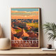 Capture the rugged beauty of South Dakota’s Badlands National Park with this vintage-style poster. Showcasing dramatic rock formations, deep canyons, and vast prairies, this artwork evokes the untamed spirit of the American West. Perfect for adventurers, nature lovers, and collectors of retro travel art. Printed on high-quality paper for a classic and enduring look.