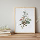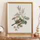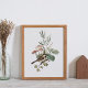 A vintage-inspired botanical illustration featuring a delicate bird among leaves and wild mushrooms. Soft natural tones and fine details create a calm, timeless nature print.