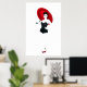Vintage fille miniature, inspirée par les années 80 et l'art de Patrick Nagel. Une femme merveilleuse tenant un parapluie rouge.