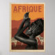 Beautifully illustrated antique style travel poster featuring a african tribal Woman and a group of zebras against an african sunset. Natural colours, including orange and retro brown