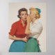 Revenez dans le charme élégant des années 1950 avec cette illustration vintage vibrante, capturant un moment intime entre deux femmes partageant un secret juteux. L'une d'elles, vêtue d'un blouse blanc et d'une jupe verte, chuchote avec attention à son amie dans un chapeau rouge gras et une jupe turquoise. Leurs visages expressifs, leurs coiffures classiques et leur mode rétro incarnent l'esprit de l'Americana du milieu du siècle. Cette oeuvre nostalgique est pleine de personnalité, ce qui en fait un design parfait pour les cadeaux à thème vintage, le décor de maison ou les accessoires. Idéal pour les amateurs d'art rétro à épingles, de culture des commérages, ou pour tous ceux qui aiment l'ambiance emblématique des années 1950. Que vous décoriez un espace ou que vous fassiez rire, cette pièce ludique apporte un plaisir intemporel et une énergie flirtante à tout objet.