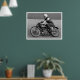 affiche vintage de moto DE 14.94 Cette affiche cool vintage de moto en monochrome montre un véhicule de course rétro et un coureur en cuir vintage plein pendant qu'il court autour de la piste. L'affiche photo en noir et blanc fera le cadeau parfait pour tout fan de course ou de motards ou collecteur d'équipement vintage.
