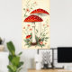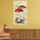 Affiche Vintage Mouche Agarique Rouge Et Champignons Blanc