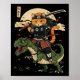 Affiche Vintage Samurai Chat Dinosaur Art japonais