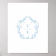 Regency Era, Vintage Botanical Sky Blue Monogram Wedding Crest Poster Print.