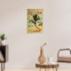 Un Lake Worth Floride moderne et rétro unique au milieu du siècle moderne imprimé d'art en style d'affiche de voyage vintage. Il dispose d'un palmier incurvé sur une plage de sable avec l'océan sous un ciel bleu nuageux.