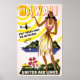 Réinitialisé et numériquement affiche de voyage améliorée montrant une femme hawaïenne faisant une danse hula alors qu'un avion vole dans l'arrière - plan. Couleurs corrigées. Photo publiée avec l'aimable autorisation de Library of Congress.