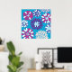 Affiche Violet rose Fleur Art sur bleu Turquoise