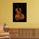 Cette affiche présente une vie morte classique d'un vieux violon élégant. Cet instrument gracieux est essentiellement une boîte en bois creux aux extrémités arrondies, deux trous gracieux et un centre étroit. Les quatre ensembles de cordes s'étendent d'un porte-cordes au bas du corps sur un pont surélevé jusqu'à l'extrémité du cou étroit, ou du panneau où les quatre cordes sont insérées dans une boîte à aiguilles et y sont maintenues avec des chevilles. Les piquets sont utilisés pour régler le violon. Lorsque l'arc est tiré à travers les cordes sur le corps du violon, il produit une musique incroyable, magique! Les magnifiques tons marron doré, presque orangés, se marient avec le gracieux velours noir.