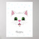 Affiche Visage de chat blanc mignon et drôle et étoiles