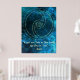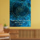 Le symbole de l'oeil unique émane de la clarté dans sa position centrée. Les lignes géométriques laissent place à des visions. L'art exprimé par le design est un outil de méditation simple à utiliser pour regarder. L'espace dans les lignes géométriques aide à rester à l'écoute de la voix intérieure intuitive. L'art est un aimant pour le bien-être et un stimulant quotidien pour les espaces de travail domestiques et thérapeutiques/créatifs. Main dessinée et fusionnée dans des médias mixtes, imprimée en or clair sur arrière - plan bleu fumé.