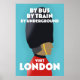 En Bus, En Train, En Métro - Visitez Londres en vintage sur affiche de voyage.