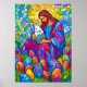 Vitrail Art de Jésus-Christ avec un mignon lapin de pâques et des oeufs de pâques vibrants. De mignons animaux de lapin pour la résurrection de la religion chrétienne. Bonne Pâques avec Jésus et ce joli lapin blanc.