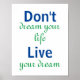 Cette affiche encourageante, parfaite pour la classe, a une citation motivationnelle en bleu et vert : Ne rêvez pas votre vie Vivez votre rêve.