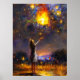 Une jeune fille tend la main vers une lanterne lumineuse qui s'élève dans un ciel rempli d'étoiles. Cette peinture poétique capture l'innocence d'un vœu fait sous la nuit, avec des coups de pinceau expressifs et une couleur radieuse. La lumière chaude et l'atmosphère rêveuse évoquent l'espoir, l'émerveillement et la beauté de croire.