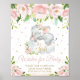 Affiche Voeux d'éléphant rose fleuri pour bébé