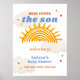 fêtez et profitez du baby shower avec le thème du baby shower ensoleillé avec notre mignonne et adorable invitation au baby shower "voici le fils", décor de baby shower, panneau d'accueil baby shower, service de baby shower. Caractéristique de design avec aquarelle de soleil, coloré étoile de fête brillant illustration. Voici le thème fils parfait pour le baby shower bébé garçon. vous pouvez customiser votre propre texte et couleur.