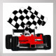 Affiche Voiture de course avec drapeau à damier
