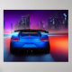 L'affiche est montrée avec une photo d'art d'une voiture de sport. Customisez cet objet ou achetez tel quel. Image stock