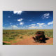 Tableau numérique d'une voiture rouillée dans le vaste désert de l'Arizona. La voiture se trouve au premier plan avec la brosse et le désert qui s'étendent à l'horizon. Des poteaux téléphoniques bordent l'interstate de l'arrière - plan.