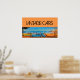 AFFICHE VOITURES JAUNES BLEUES SUR LA ROUTE DE LA PLAGE