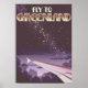 Vol au Groenland - affiche de voyage de style vintage d'un avion moderne en vol vers sa destination du Groenland.