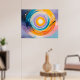 Ce design abstrait vibrant capte l'essence d'une danse cosmique, avec un tourbillon de couleurs centré autour d'un coeur rayonnant de soleil. Les couches de bleu, de violet, d'orange et de jaune se mélangent harmonieusement, créant un sentiment de profondeur et de mouvement. Il évoque le sentiment d'être entraîné au coeur d'un phénomène céleste, où la chaleur d'une étoile rencontre l'étendue cool de l'espace. Pour ceux qui apprécient les designs audacieux et contemporains avec un thème céleste.