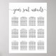 Tableau de sièges invités mariages en noir et blanc classique caractéristiques "votre siège attend" en haut dans un script de calligraphie manuscrit fantaisiste en lettrage, avec vos assignations de table invités en dessous. Espace prévu pour 12 tables maximum.