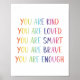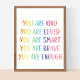 Tu es gentil, tu es aimé, tu es intelligent, tu es courageux, tu es assez de typographie.. Affirmations amusantes de l'arc-en-ciel. Typographie. Genre neutre pour les chambres de garçons ou de filles.