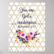 Vous êtes le chef-d'oeuvre de Dieu en écriture bleue avec motif floral, sur un arrière - plan blanc avec marquages design diamant. Ce design est basé sur Ephésiens 2:10. Vous êtes une véritable oeuvre d'art, une personne unique créée par Dieu Tout-Puissant avec un chemin et un but spécifiques. Cette affiche ferait un cadeau inspirant et encourageant pour vous-même, un ami ou un membre de la famille.