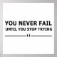 Vous pouvez ajouter un peu d'originalité à votre collection d'armoires avec ce "vous n'échouez jamais jusqu'à ce que vous arrêtez d'essayer" design texte avec une police de typographie géniale lettrage, est une excellente idée cadeau pour les hommes, les femmes, les maris, la petite amie de la femme, et un petit ami qui aimeront cette motivation unique et dicton inspirant. Les meilleures paroles extraordinaires courtes positives présentes pour votre collection de sagesse. Si vous aimez cette illustration, vous pouvez consulter d'autres modèles et options similaires.
