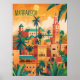 Cette affiche de voyage présente une illustration sereine et chaleureuse représentant l'horizon de Marrakech. C'est une grande affiche orientale pour les voyageurs qui ont l'intention de visiter Marrakech ou pour ceux qui ont voyagé Marrakech.