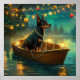 Mettez les voiles dans la magie de la saison des fêtes avec cette illustration magnifiquement détaillée, mettant en vedette un chien fier assis dans un bateau décoré de manière festive, glissant sur un lac de Noël serein. Les lumières scintillantes des pins voisins se reflètent dans l'eau, jetant une lueur chaude et festive qui renforce l'ambiance cosy. Des ornements pendent des côtés du bateau, tandis que des lanternes lumineuses éclairent le chemin, créant une scène qui capture l'essence même de la chaleur et de la joie de Noël. Cette œuvre d'art nostalgique apporte une touche de magie des fêtes à n'importe quel espace, parfaite pour ceux qui chérissent l'esprit de la saison.